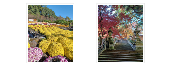 メンバーさんが行き先を提案、スタッフがスケジュール調整をして、企画されたハイキングのイベントです。参加者の中には雨女(スタッフ)と晴れ男(メンバーさん)がいましたが、当日は晴れ男に軍配が上がり、絶好のハイキング日和になりました。長い道のりの中、勾配がきつい上り坂や階段は難敵でしたが、おしゃべりを楽しみながら花盛りのざる菊や紅葉を楽しむことができました。道了尊の奥の院到達を目指す最終段階では、参拝者の前に216段の階段が目の前に迫ります。心が折れそうになりましたが、息を切らしながら休み休みなんとかたどり着くと、見ず知らずの方が『ご利益ありますよ。』と声を掛けて下さいました。